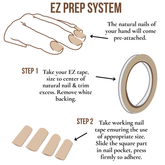 The EZ prep system is, by far, the quickest way to change out nails on your silicone practice hand or finger. Although you are easily able to remove & replace the nails, our EZ prep system works overtime to firmly secure the working nail onto the natural nail. This allows you to use an E-file, hand file, buffer or any other tool you typically use on clients without the stress of it sliding around.